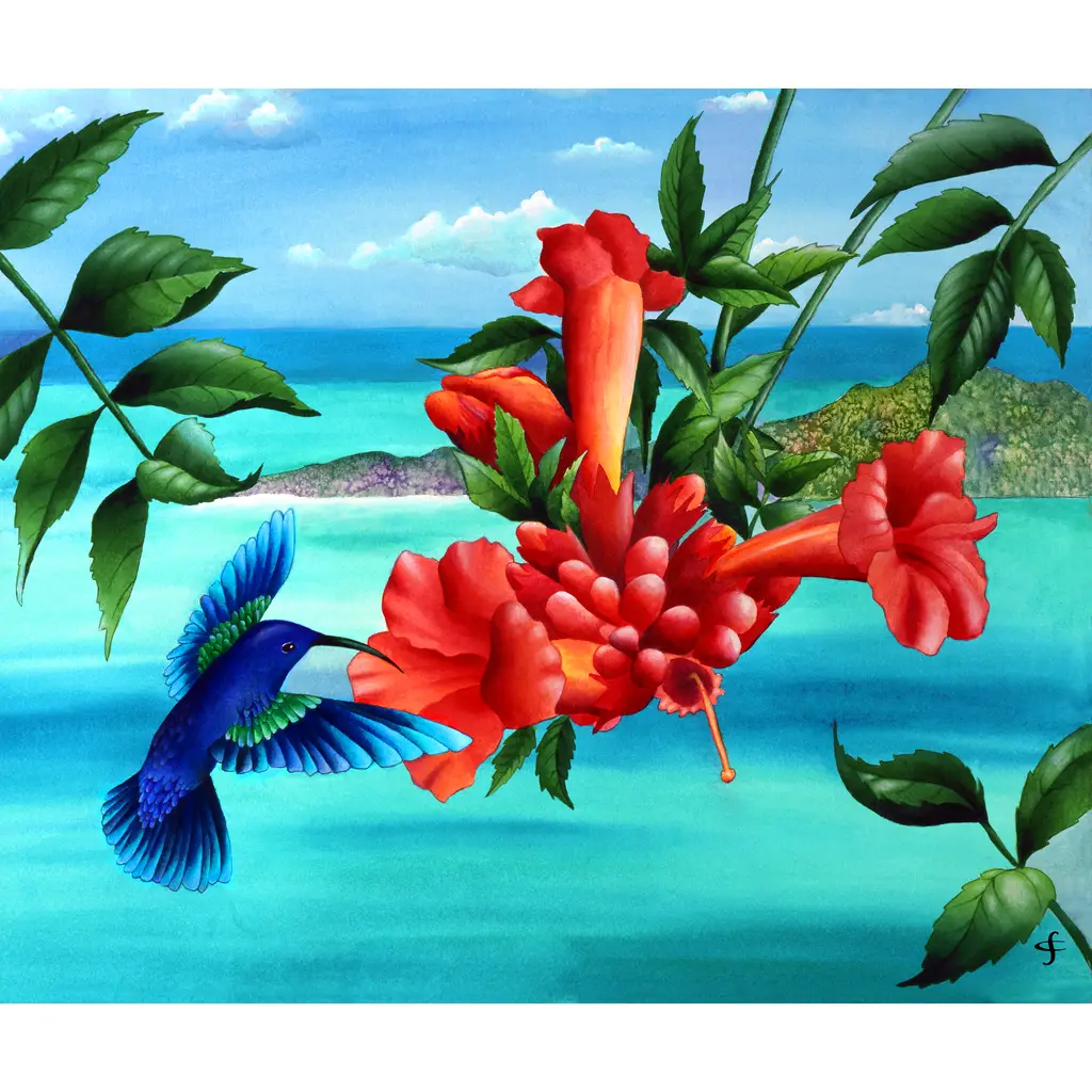Tile Mural – Beauty and Beach – Hummingbird Kitchen/Bathroom Backsplash Mural – Carolyn Steele