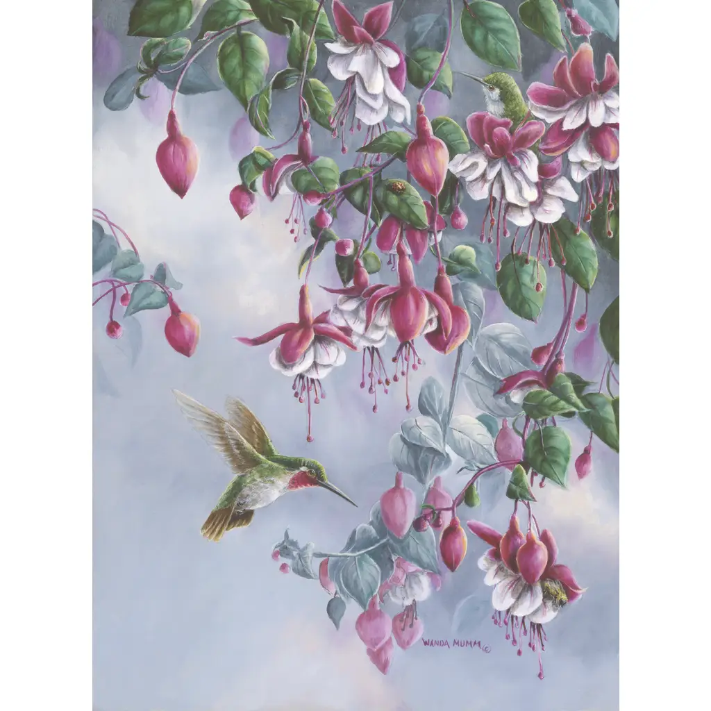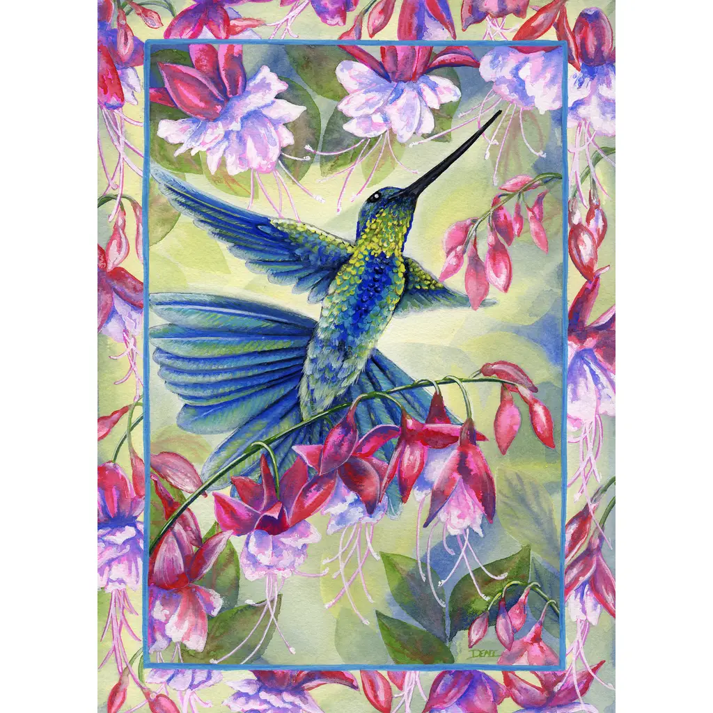 Tile Mural – Fuchsias Flight – Hummingbird Kitchen/Bathroom Backsplash Mural – Denise Freeman