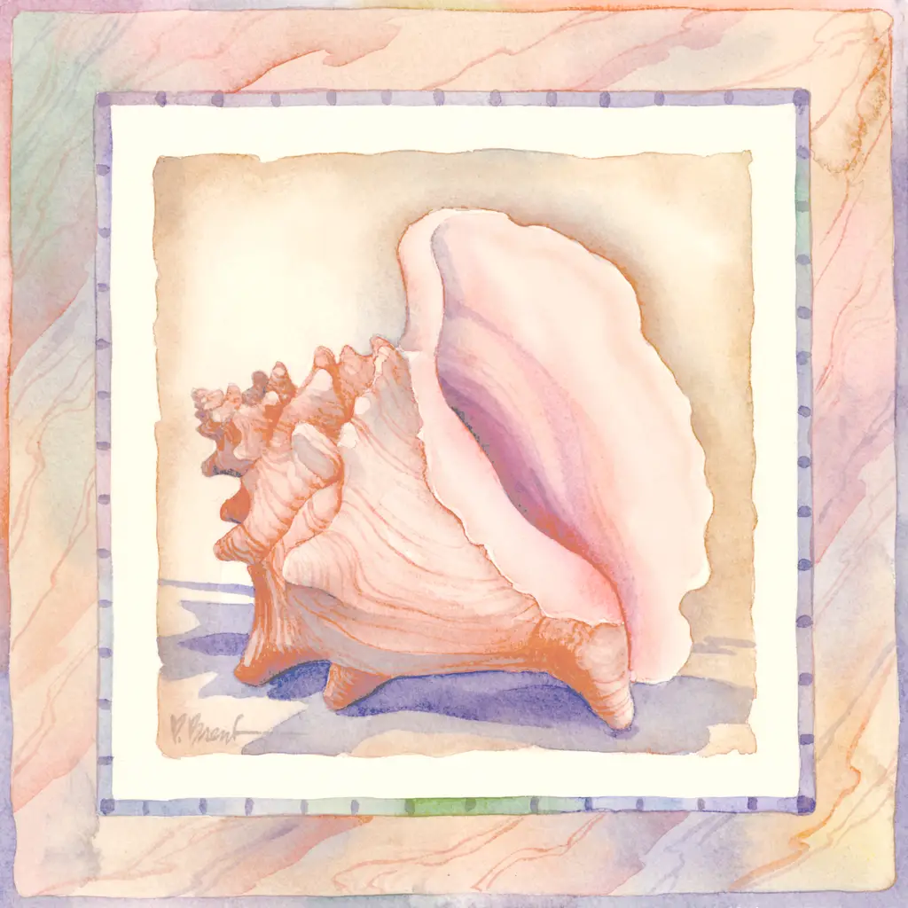 Tile Mural – Bordered Shell Queen Conch – Sea Shell Themed Kitchen/Bathroom/Shower Backsplash Mural – Paul Brent