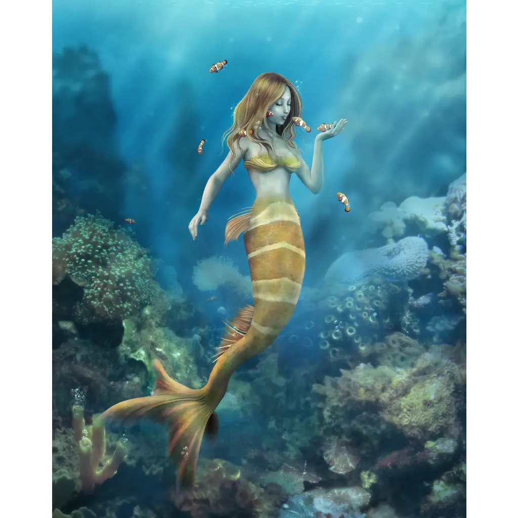 Tile Mural – Clown Fish Kiss – Mermaid Fantasy Kitchen/Bathroom/Shower Backsplash Mural – Susan McKivergan