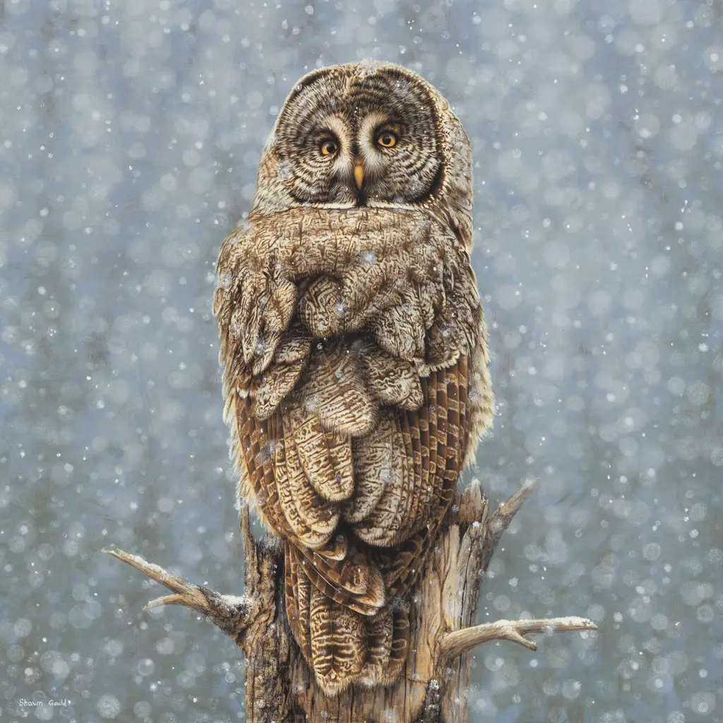 Great Gray Owl in Snow – SG – Tile Mural