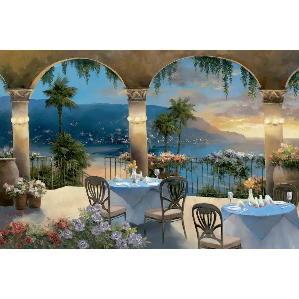 Tile Mural – Amalfi Terrace – Water View Landscape Overlooking Water Kitchen/Bathroom/Shower Backsplash Mural – Sam Park/Soho Editions