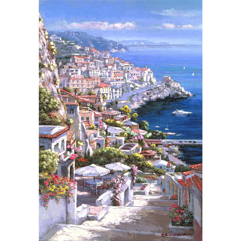 Tile Mural – Amalfi Coastline – Water View Landscape Kitchen/Bathroom/Shower Backsplash Mural – Sam Park/Soho Editions
